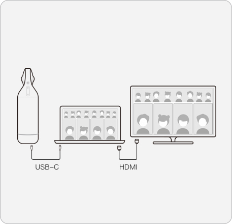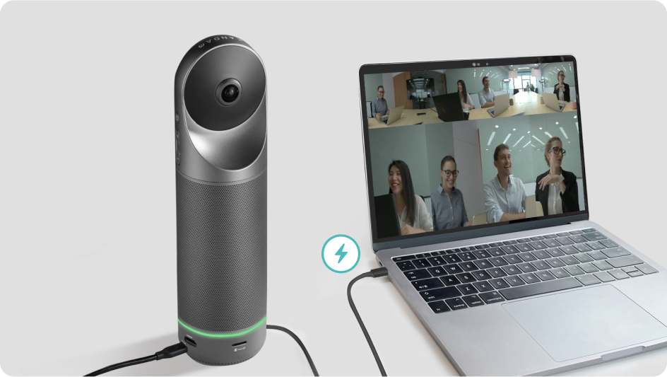 Kandao Meeting Pro has a built-in intelligent power adaptation system to supply power directly for laptops, enabling the longer lasting of various laptops without interrupting the meetings by connecting laptops to Kandao Meeting Pro via USB-C to USB-C cables.