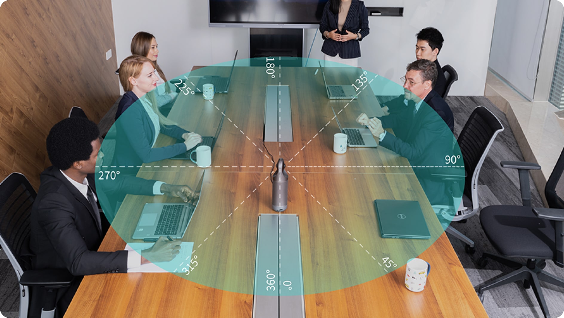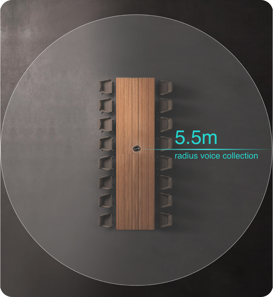 8 microphones are improved to achieve finest audio quality, which can cover range to 5.5 meters radius. Collect sound with beamforming, echo cancellation, noise reduction, and howling suppression.