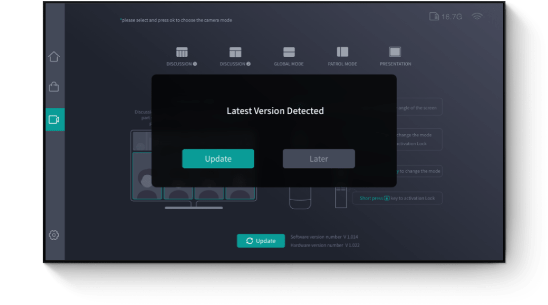 Get update notification on Kandao Meeting Pro, and directly download and install on it.